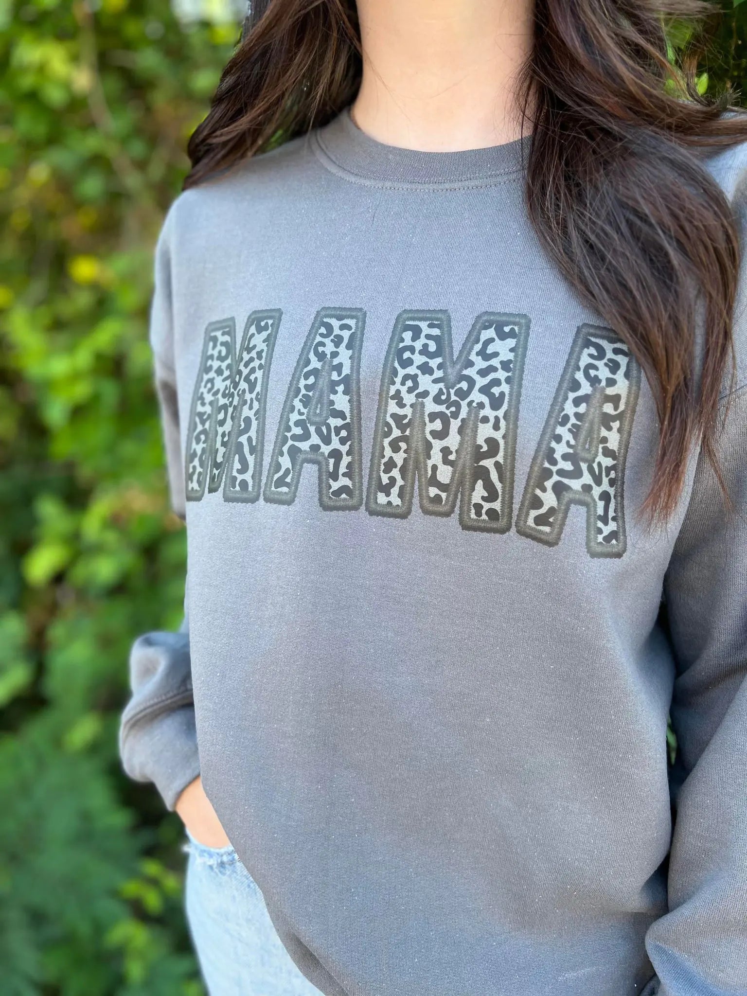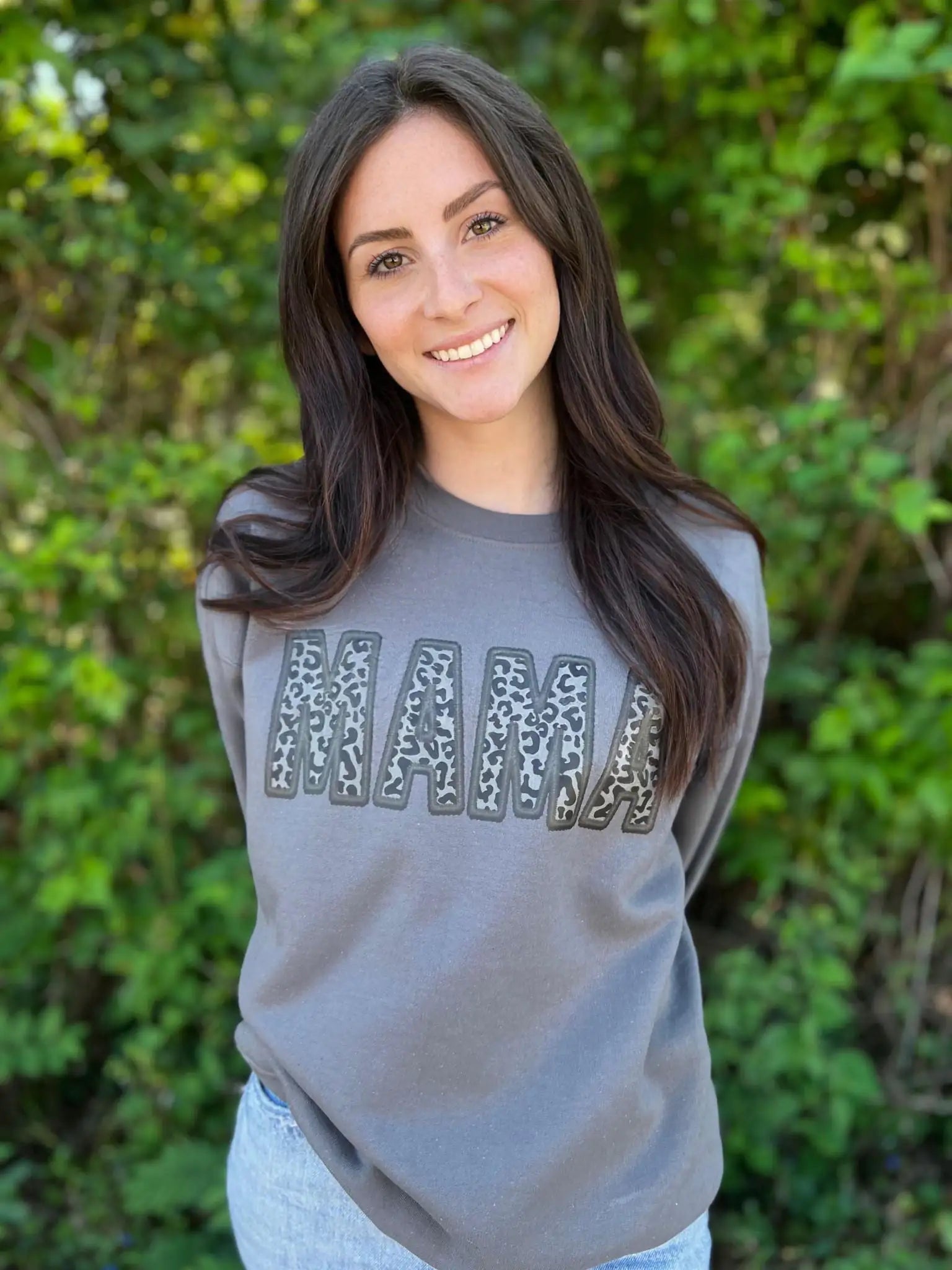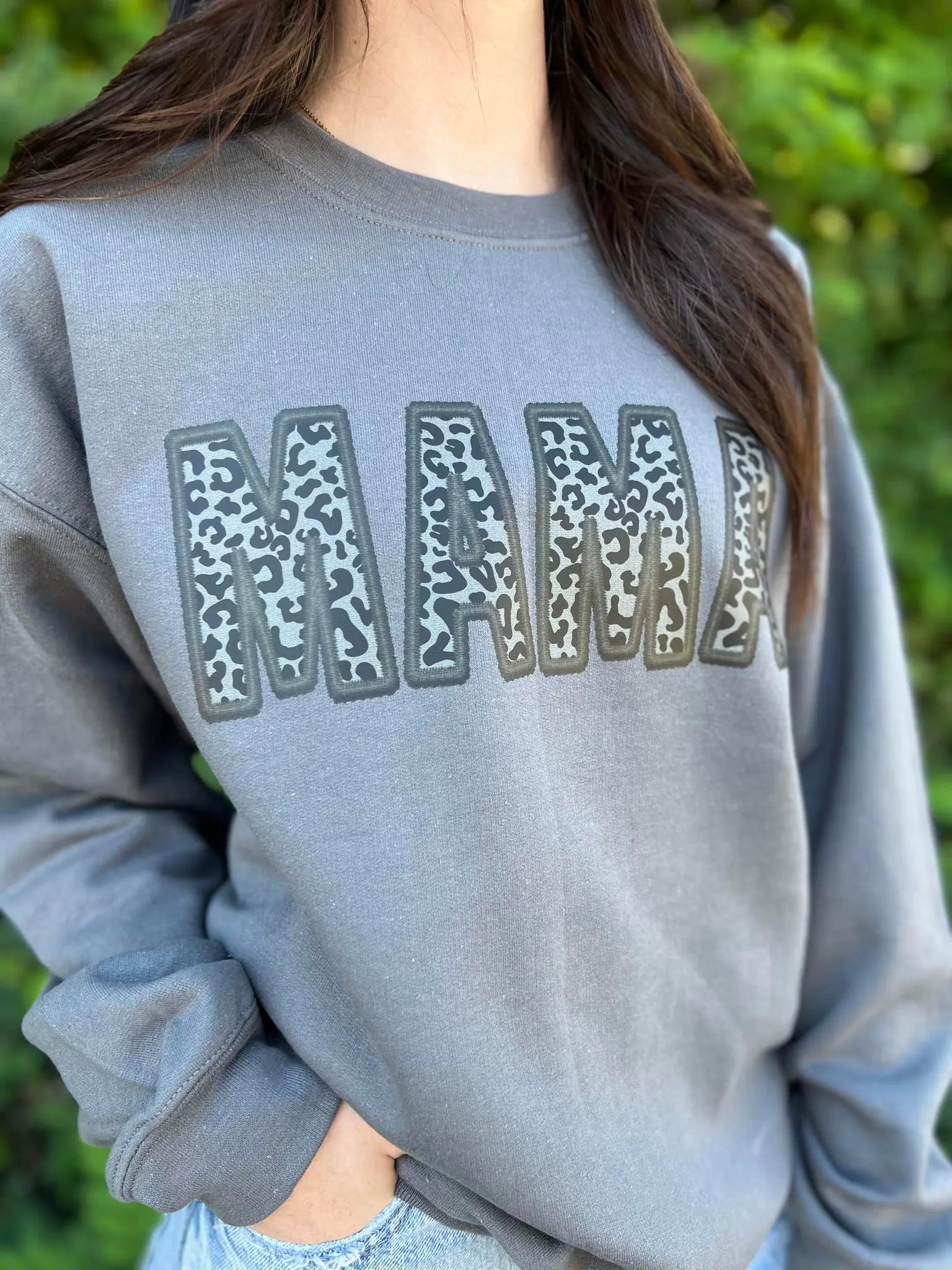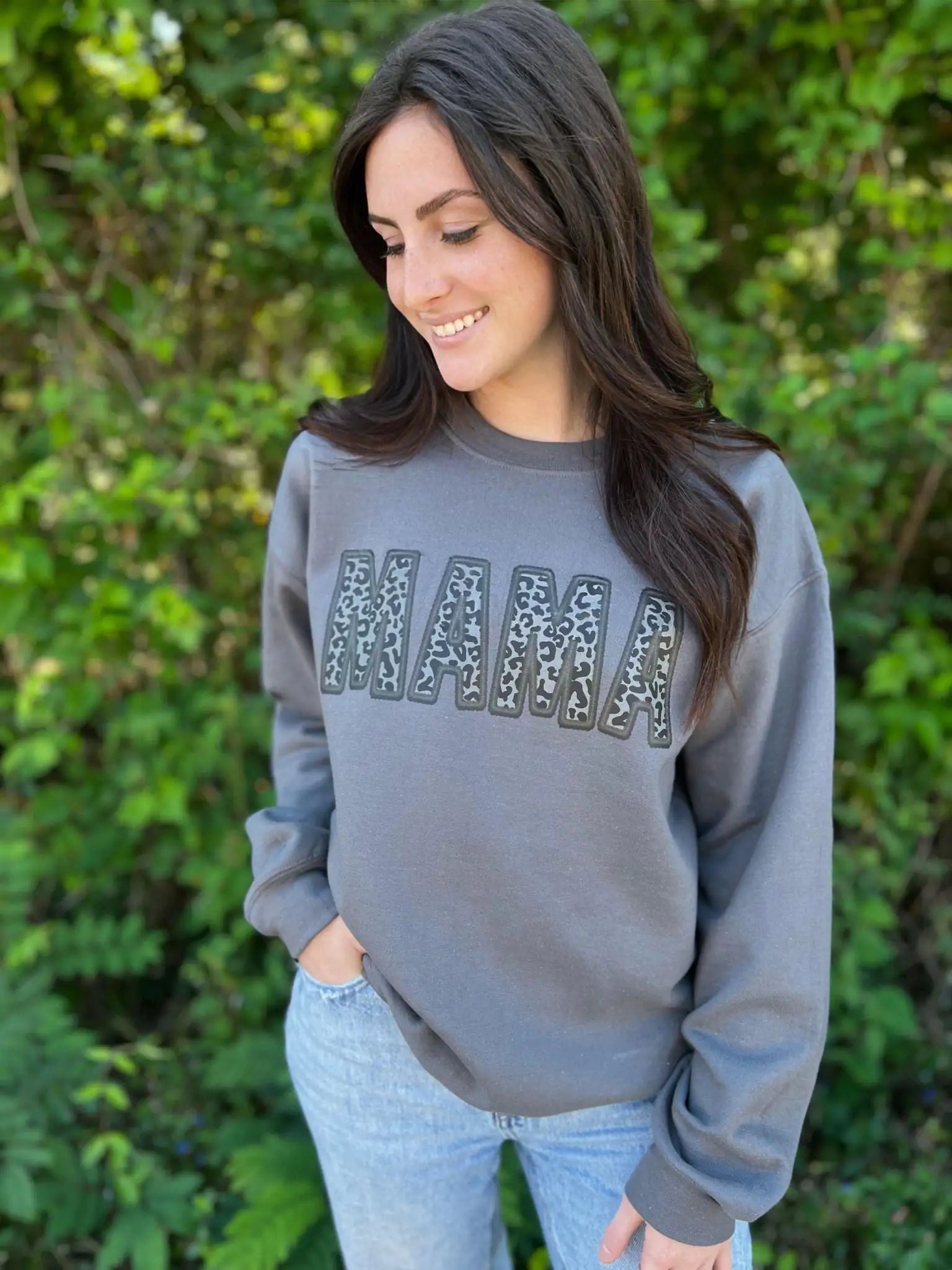 Black Leopard Mama Faux Embroidery Sweatshirt