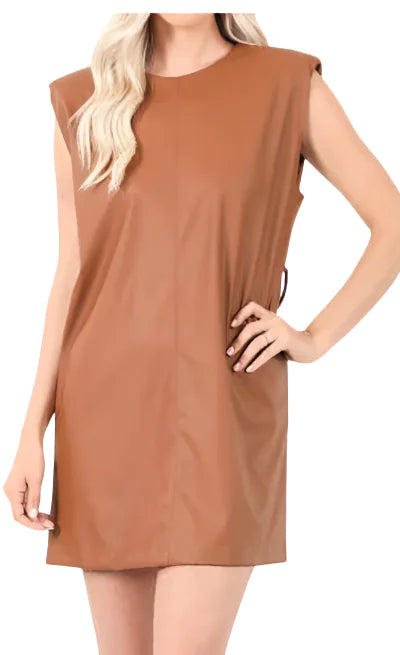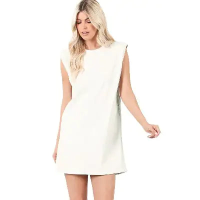 This soft mini dress is ready for anything thanks to lightweight t-shirt fabric, sleek padded shoulders. Wear it everywhere.