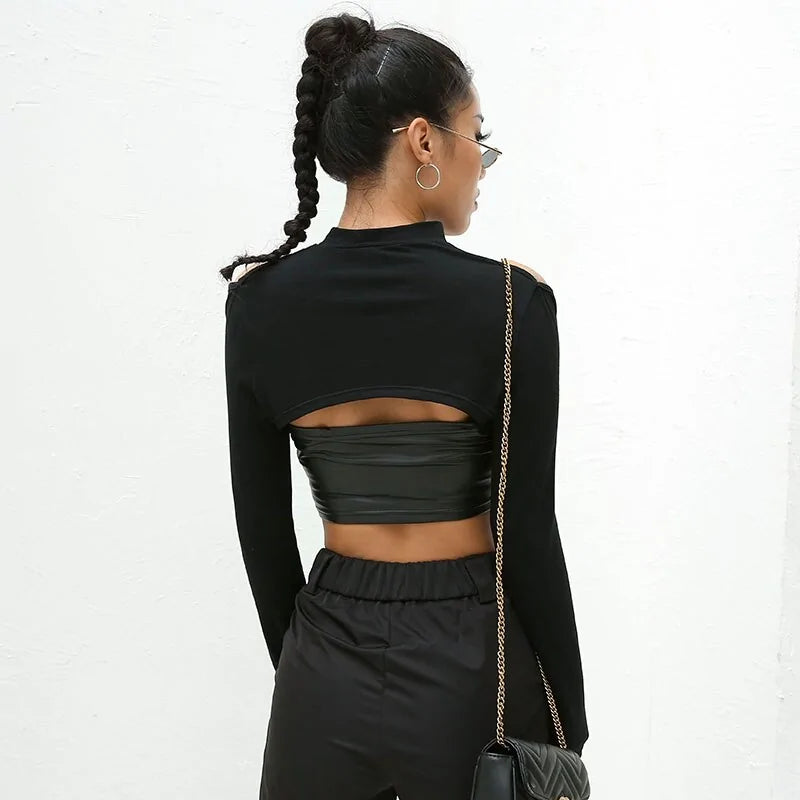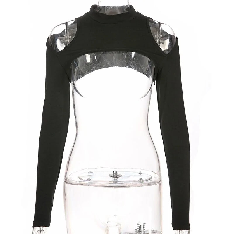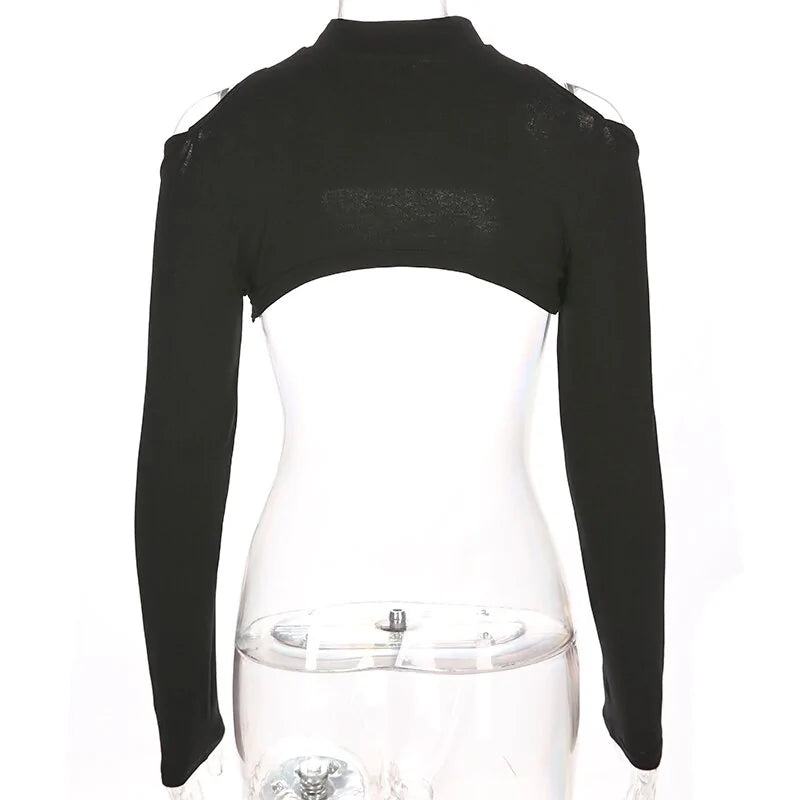 Turn heads with bold elegance in this Darlingaga's street style crop top. The stand collar and cold shoulder detail create a striking silhouette, making it a standout piece in your collection. Crafted from high-quality materials, this long sleeve T-shirt ensures both comfort and durability. Step up your style game and make a statement with this sexy and fashionable tee.