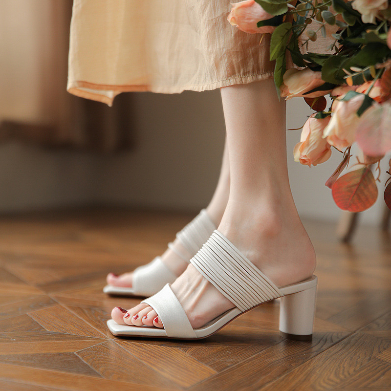 The stylish buckle wearing style not only adds a touch of sophistication but also offers a customizable fit for your comfort. Inside, the sandals are lined with first layer pigskin, providing a soft and breathable experience for your feet.