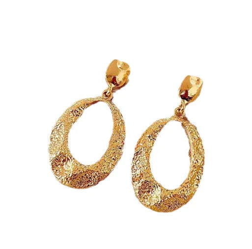 The Vintage Geometric Oval Metal Earrings bring a timeless and bold touch to any outfit. Featuring an irregular oval shape with intricate geometric details, these earrings combine modern design with vintage charm. Crafted from durable metal, they offer a stylish statement that elevates your look, whether you're dressing up for a special occasion or adding flair to your everyday style. Lightweight and easy to wear, these earrings offer both comfort and elegance, making them a must-have accessory for fashion-forward women.