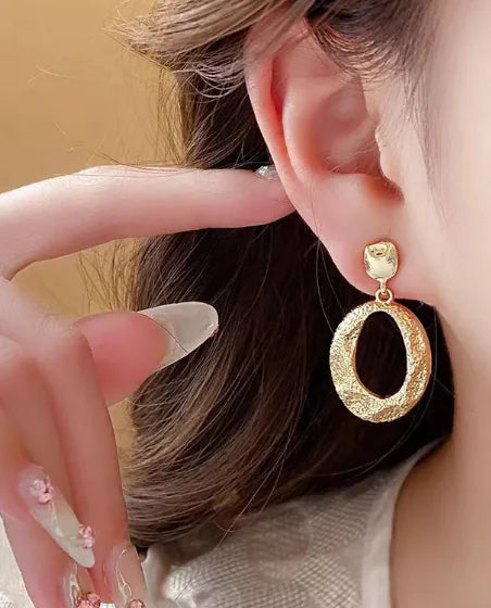 Vintage Geometric Oval Metal Earrings